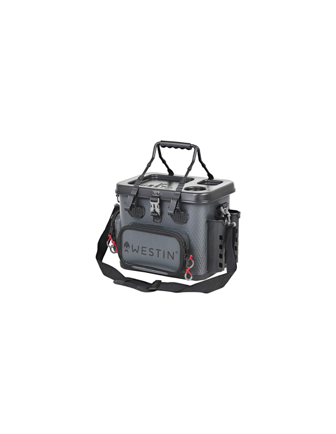 W4 Safeguard Tackle Bag kombinerar hög prestanda med elegant, modern design. Tillverkad av vattentät, värmeförseglad EVA med Westins signatur Hexagon-mönster, är den byggd för att hantera tuffa förhållanden samtidigt som den håller din utrustning torr och skyddad. Ett specialdesignat hårt lock av EVA ger struktur och fungerar även som en praktisk arbetsyta. Designad för seriösa sportfiskare, har den en stor framficka, en sidoficka med tånghållare, två spöhållare och saltvattenbeständiga dragkedjor. Med en justerbar axelrem och bärhandtag är den lika mångsidig som den är hållbar – stark, snygg och redo för alla fiskeäventyr.