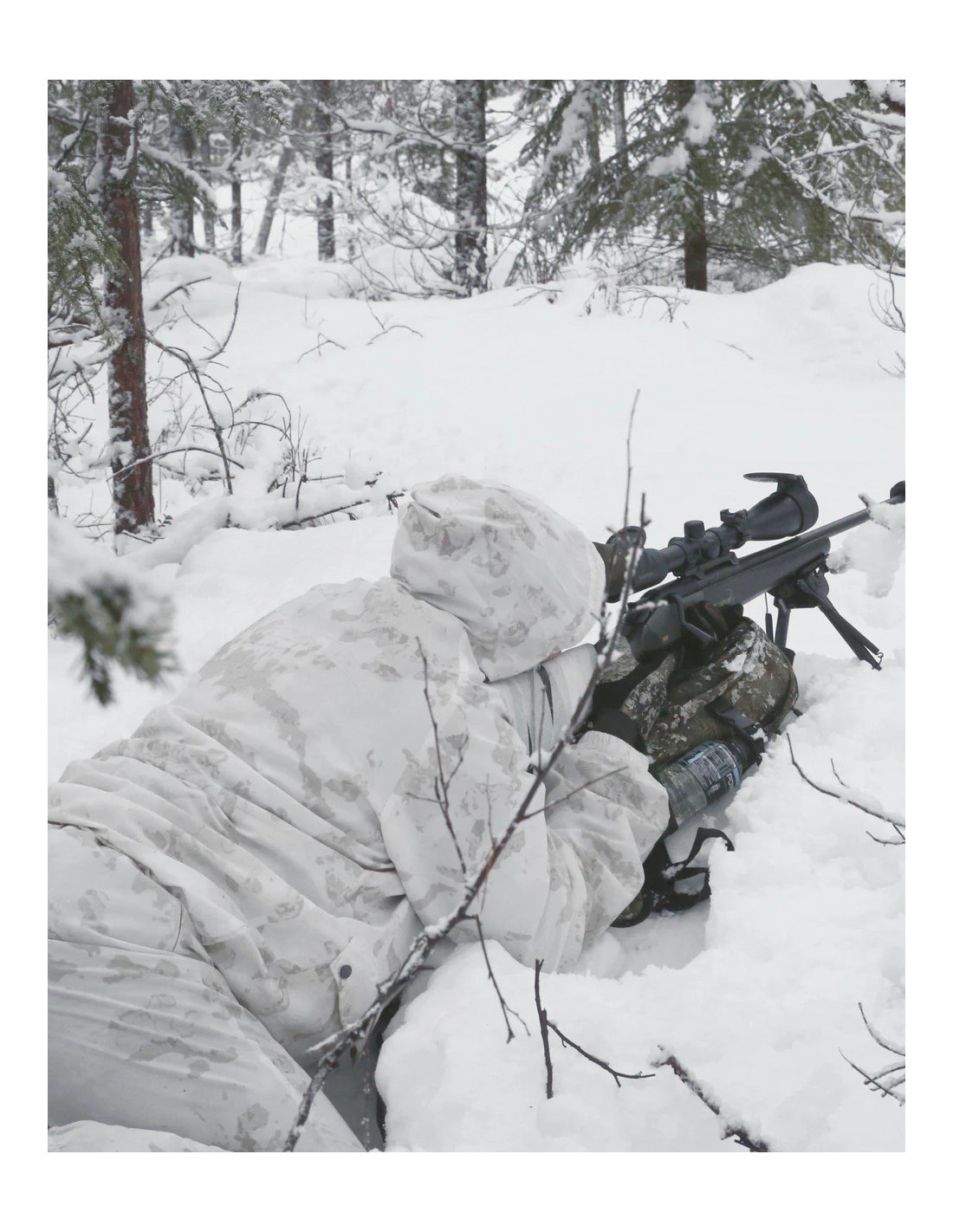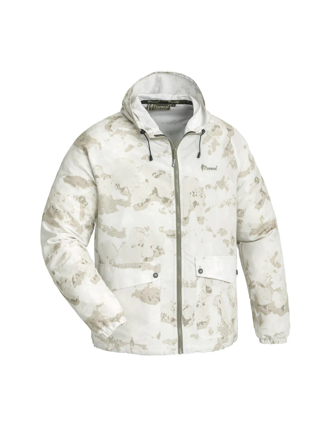 Lätt och luftig kamouflagedräkt. Jackan har stora framfickor med tryckknappar, byxan har två fickor med dragkedja samt elastisk midja med dragsko. Resår i ben och ärmslut. Fast, reglerbar huva. Behandlad med Bionic Finish® Eco för extra vattenavvisande egenskaper.