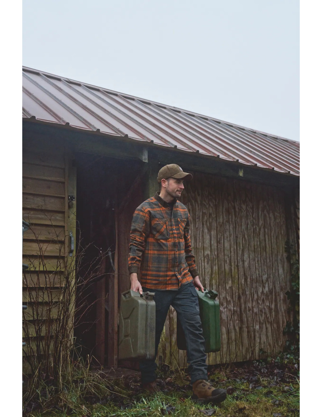 Pajala-skjortan är en rutig flanellskjorta med förstärkningar i mockaimitation och praktiska fickor för jakt och friluftsliv.