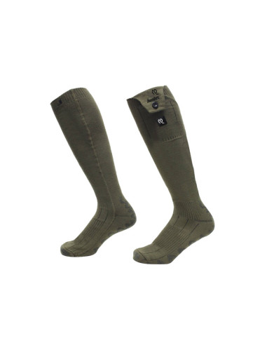 Värmestrumpor som håller dina fötter varma under kalla vinterdagar. Levereras med två powerbanks som läggs i ficka i strumpans överkant. Värmen regleras med hjälp av tryckknapp.